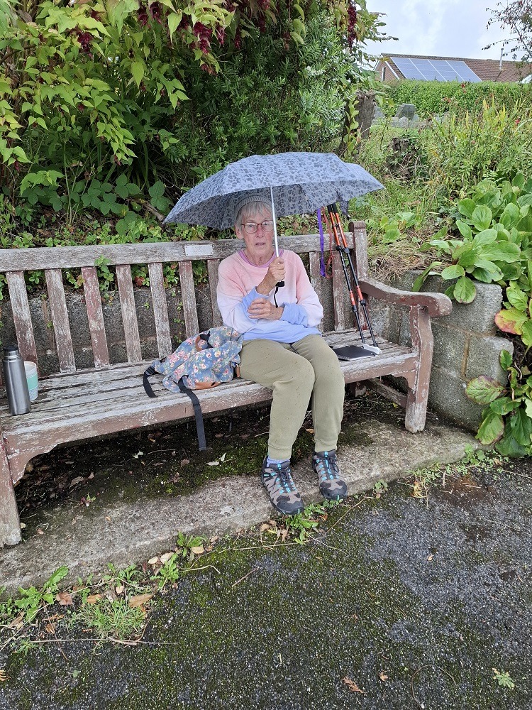 “It was lovely to have a visit from Liz, who continues her amazing recovery after falling off a mountain! She was scaling the slopes of the cemetery, testing out the new online accessible record of graves system – found at HeritEDGE – East Devon District Council – Sidmouth.