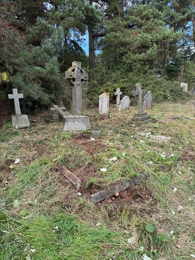 The Cherishing Sidmouth Cemeteries volunteers have been busy clearing more graves in the older part of Sidmouth Cemetery – which has necessitated also lots of clearing brambles at the Cemetery.
